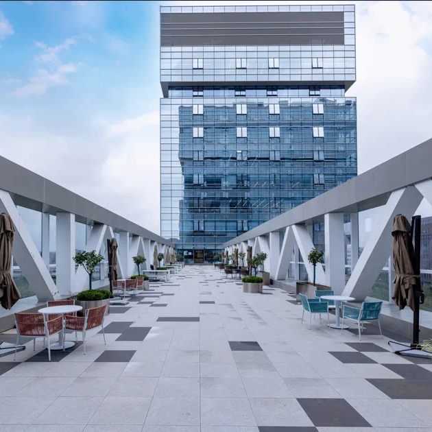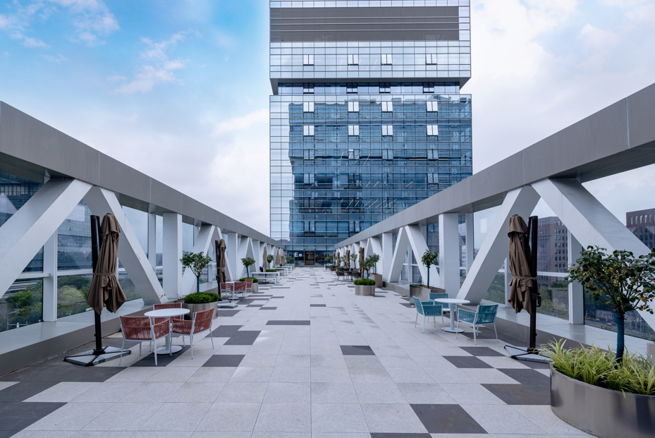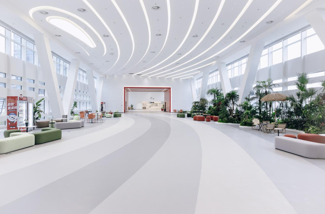 走进园区,会发现自己仿佛置身于一个巨大的花园,园区里有超千株的乔木绿植,园林氛围感拉满。