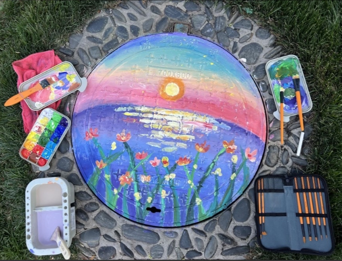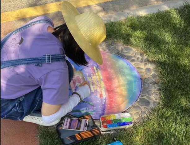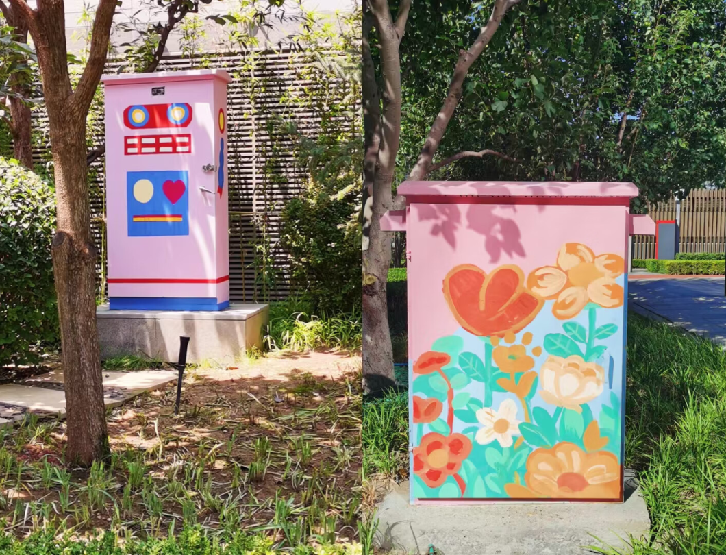 低头往下看,小知还发现在京东园区里,路边的电箱、脚下的井盖都穿上了彩色的“外衣”,这些色彩斑斓的井盖是由京东的员工/京宝贝亲手绘制的 ,为科技感满满的园区增添了一抹艺术气息。