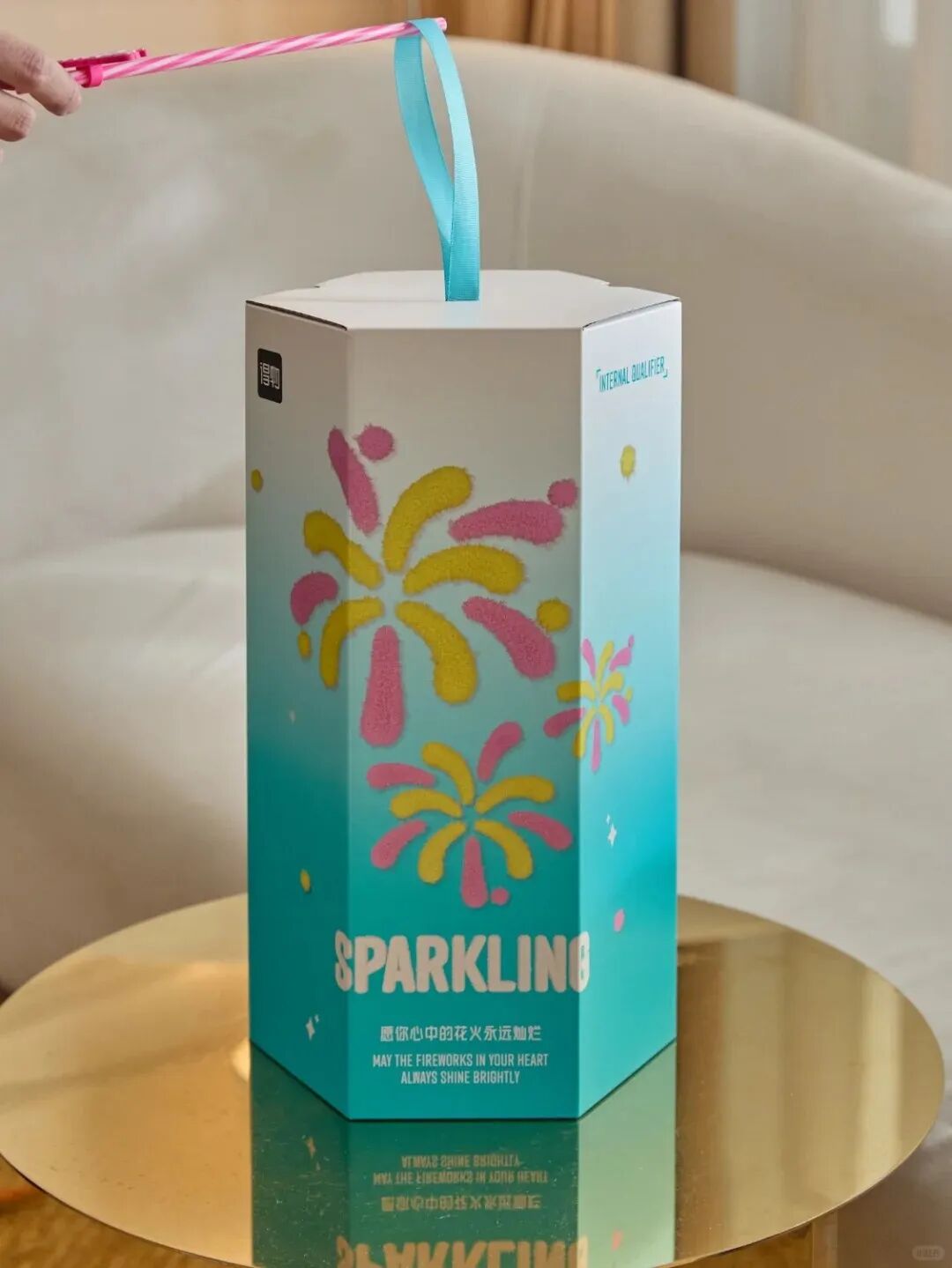 「爆竹六棱柱」包装设计灵感来自传统爆竹的棱角造型,开箱瞬间仿佛点燃惊喜!花火交织,搭配半边绒质感,拆礼就像拆一份节日的期待,仪式感拉满。