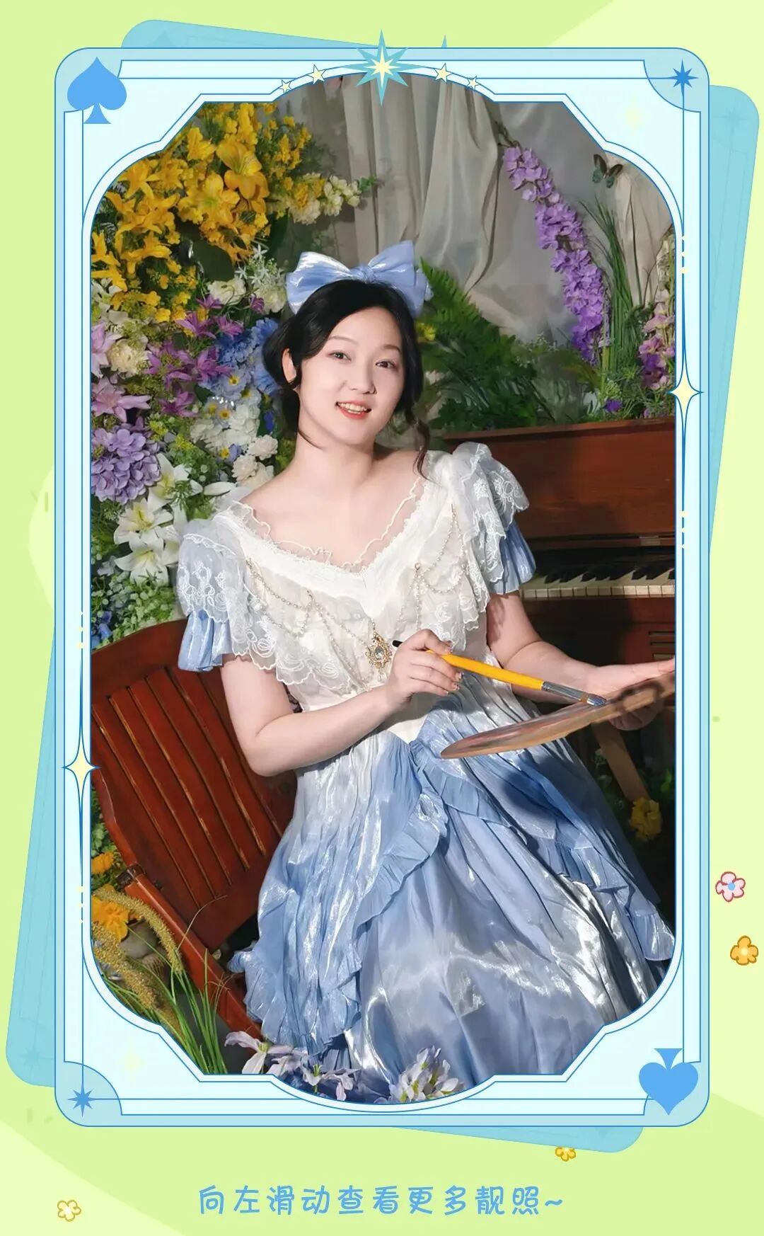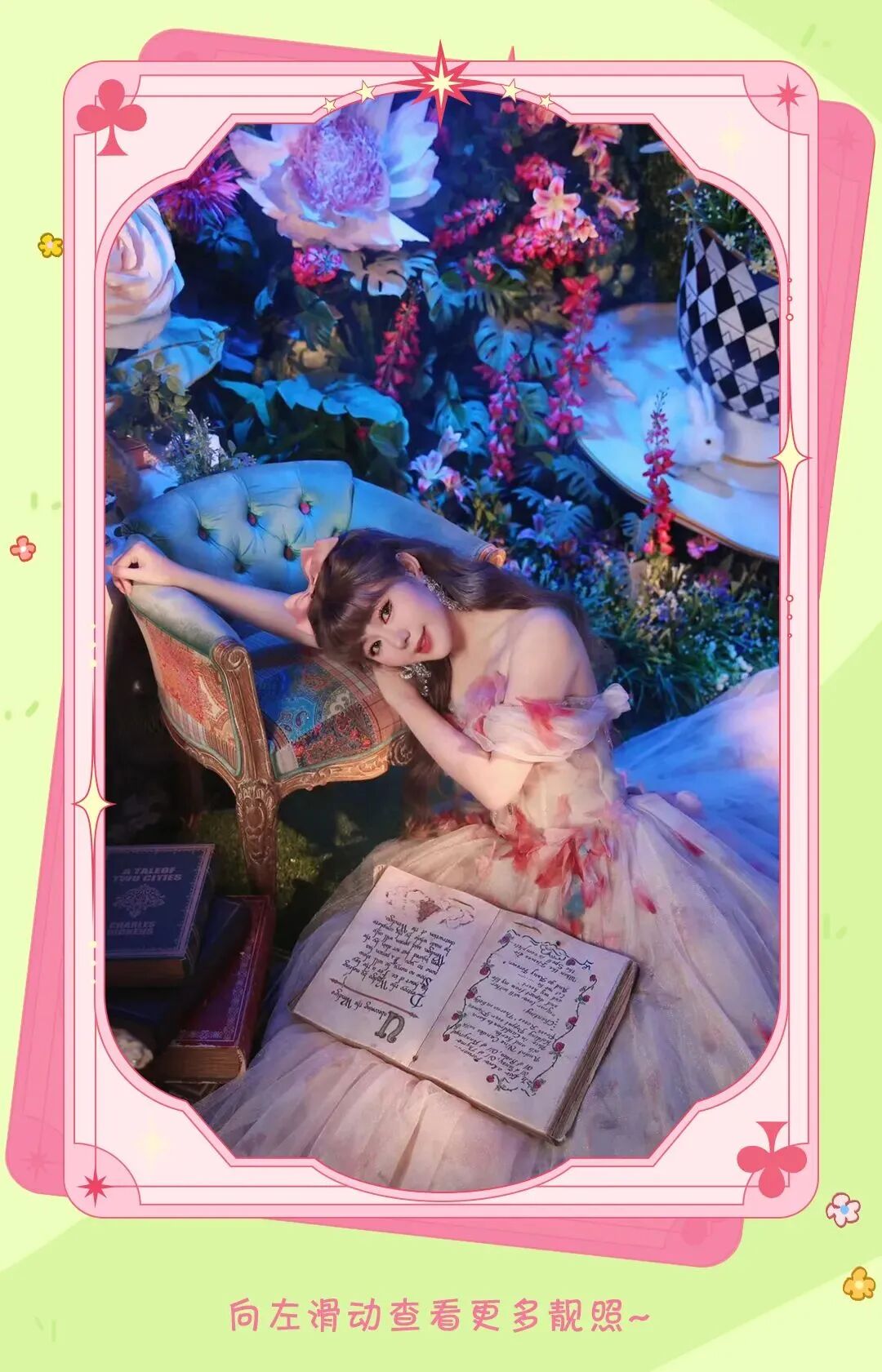 活动当天,穿着Lolita的公主,到活动主背景处找工作人员帮忙拍下美美照片,将有机会获得“抽奖刮刮乐”,刮出精美奖品:花知晓镜子or爱丽丝童话书or彩妆大礼包;没穿Lolita的公主,只要在活动主背景处拍照并分享至朋友圈,同样可以到抽奖区抽取奖品。