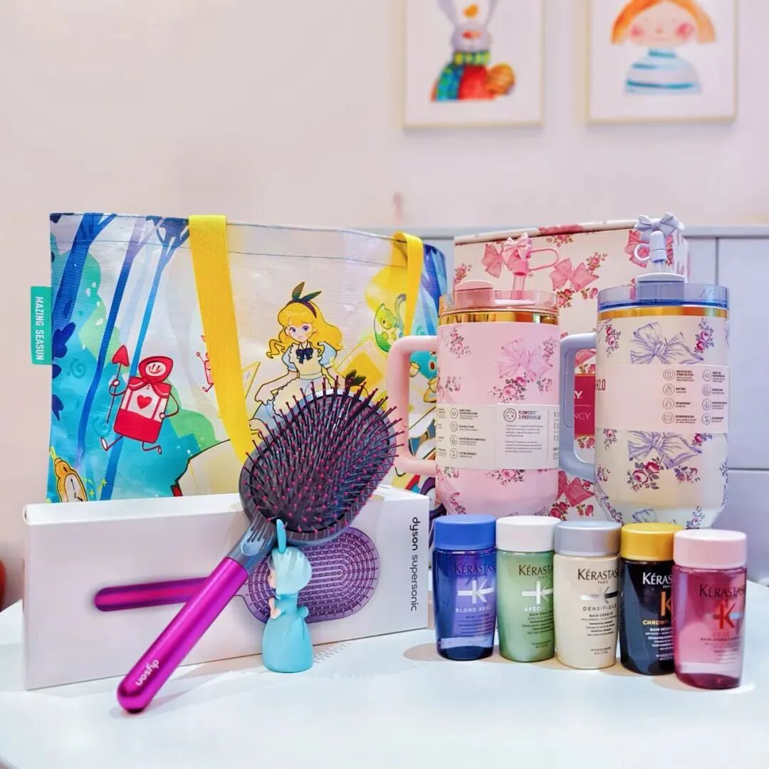针织袋里惊喜多多,包含施华蔻洗护套盒*1、欧舒丹护手霜*1、歌帝梵巧克力礼盒*1、艾草锤*1、种子卡*1...祝愿完美女同学继续以优雅的姿态,绽放属于自己的光芒,健康、美丽、自信,永远不被定义,向阳而生,绽放无限可能。
