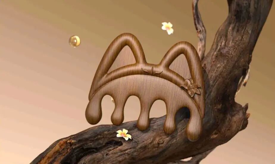 黑檀木按摩梳将玉面狐狸的标志性耳朵融入梳子,更精心提取了百合花元素点缀。
