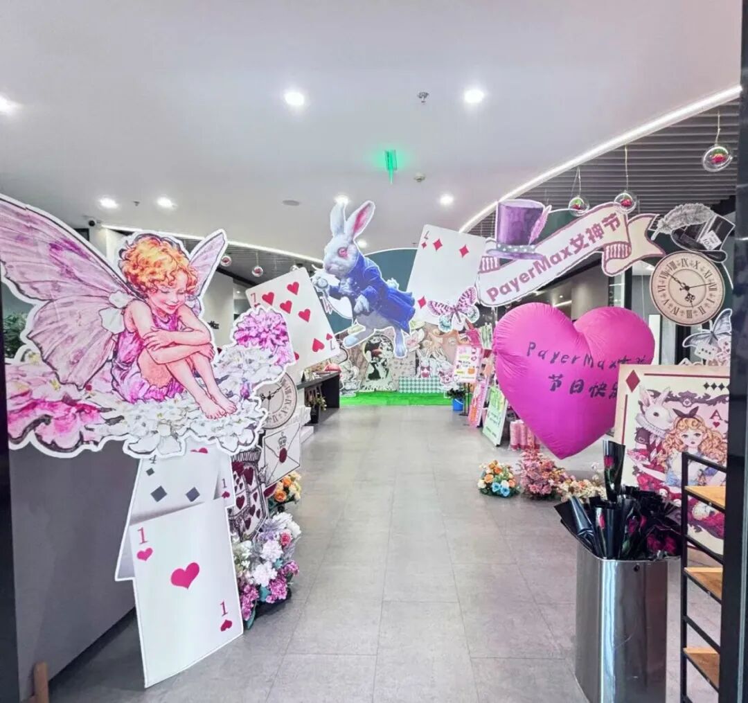 PayerMax女神节以“爱丽丝梦境”为主题,打造梦幻打卡场景,并准备了丰富的体验,发放了Stanley联名杯、小狗腊肠包等限定伴手礼。