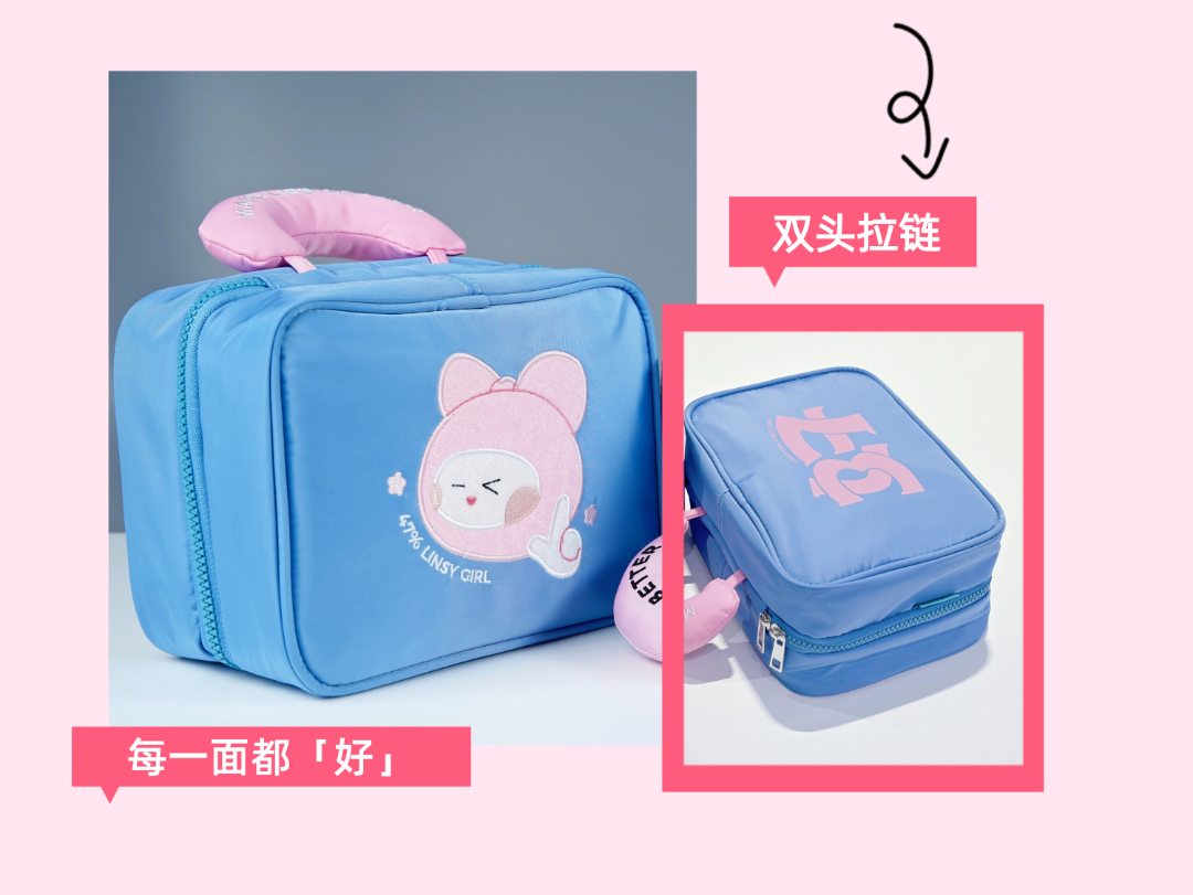 甜酷风的林诚诚,搭配双开头拉链设计,谁也不能阻止LINSY Girl,切换水灵灵Best Girl模式。除了作为化妆包,在浴室/玄关/行李箱杆万物皆可挂,解锁立体收纳术,启动开挂人生。