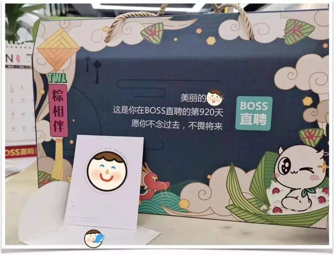 Boss 直聘则针对每个员工进行定制化的包装设计,员工名字和在企业工作的时长都显示这是一份独属于「你」的礼物,创造员工的骄傲和归属感,诚意十足。👇