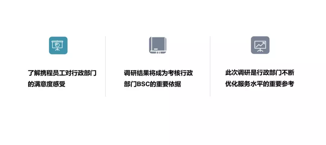 携程的行政er也会利用抽样调查,定期调研员工满意度,获得一手投诉及建议资料。并将调研结果作为行政部考核的依据,以此鞭策自我不断优化行政服务水平。