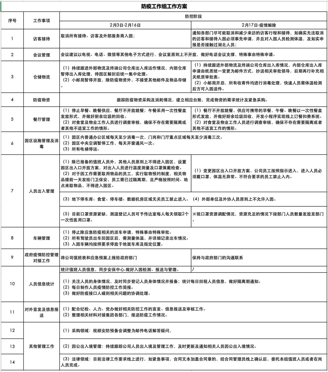 在国家、社会对新型冠状病毒的认知和宣传不断强化和升级的基础上,我们看见诸多大厂正在紧锣密鼓地采取诸多有效手段来应对开工后的防疫工作。其中有许多措施非常值得借鉴,比如——