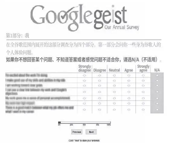 谷歌每年会在Googlegeist问卷调查结束后的一个月内,将所有结果(不论好坏)与全体员工共享。