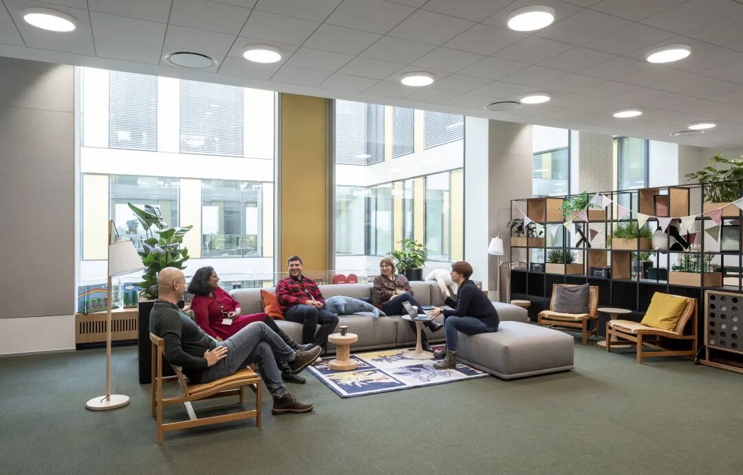 休闲和办公的区域没有严格的界限,任何人都可以抱着台电脑随处坐下,思考、捕捉灵感。