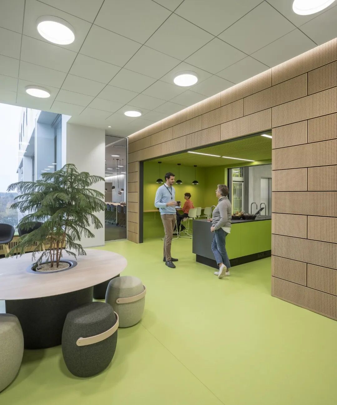 高楼层有可随时进行小组讨论的会议室进行头脑风暴,想提提神则可以去咖啡馆休息下,还可以在临时工作站内玩乐高积木,也可以到露台上去晒晒太阳、透透气。