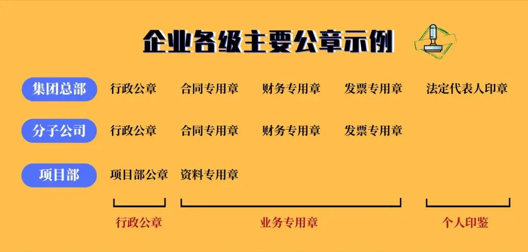 ② 设立分级管理原则。企业或集团应依据各层级机构(集团总部、分子公司、项目部)情况分开保管印章。