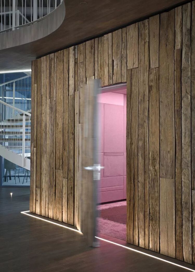 室内有着温暖的色调、温馨的感觉,广泛使用天然木材,但同时又有着创造性,也有着丰富的自然光分布,这种办公室设计,你喜欢吗?