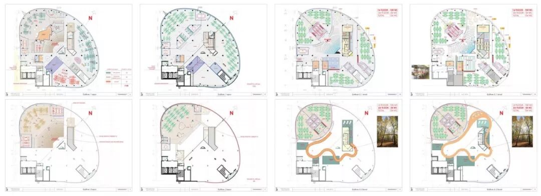 在决定办公室的地点以后,设计师们前后做了大概 4个不同方案的平面图,并选择其中最合适的一个。