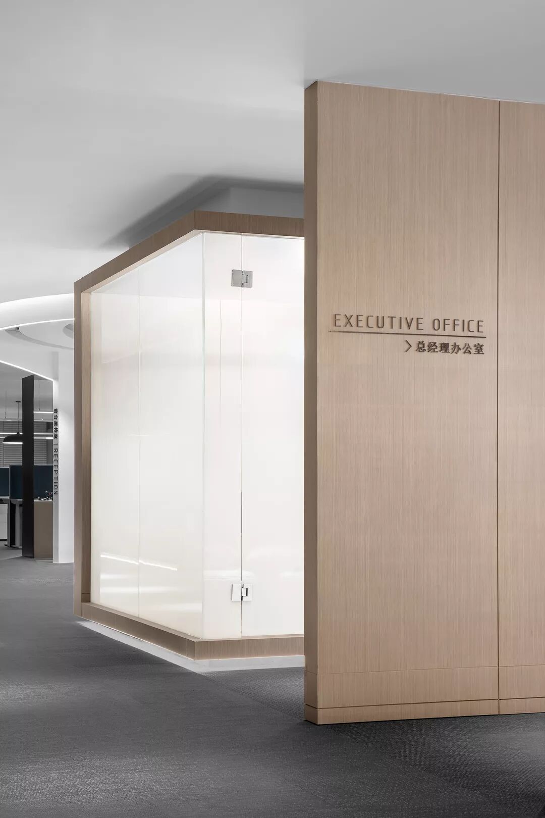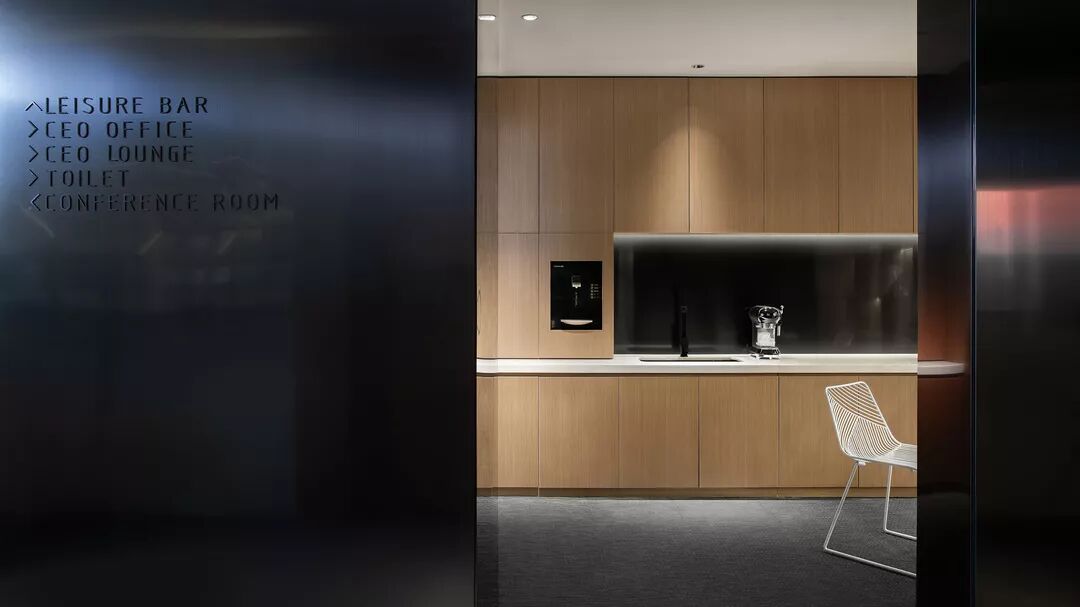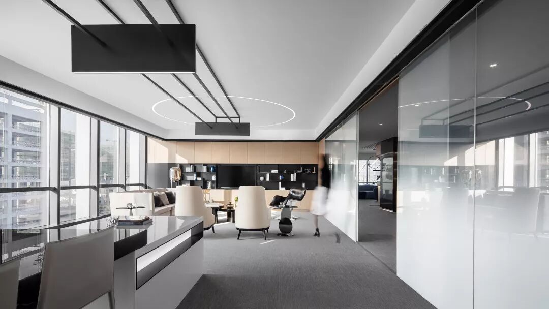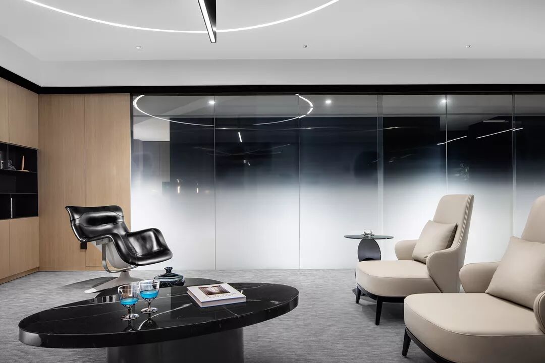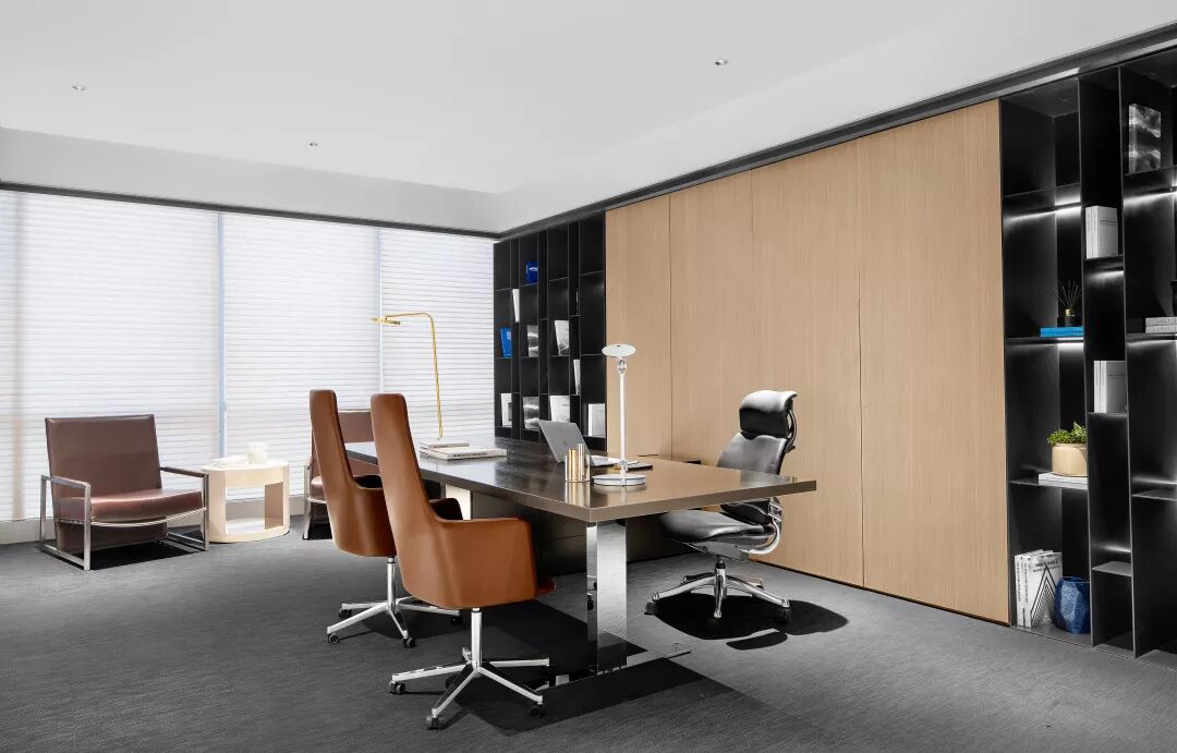 总裁接待区采用了半通透的设置,满足私密性的状态下,给到内部最好的采光度。