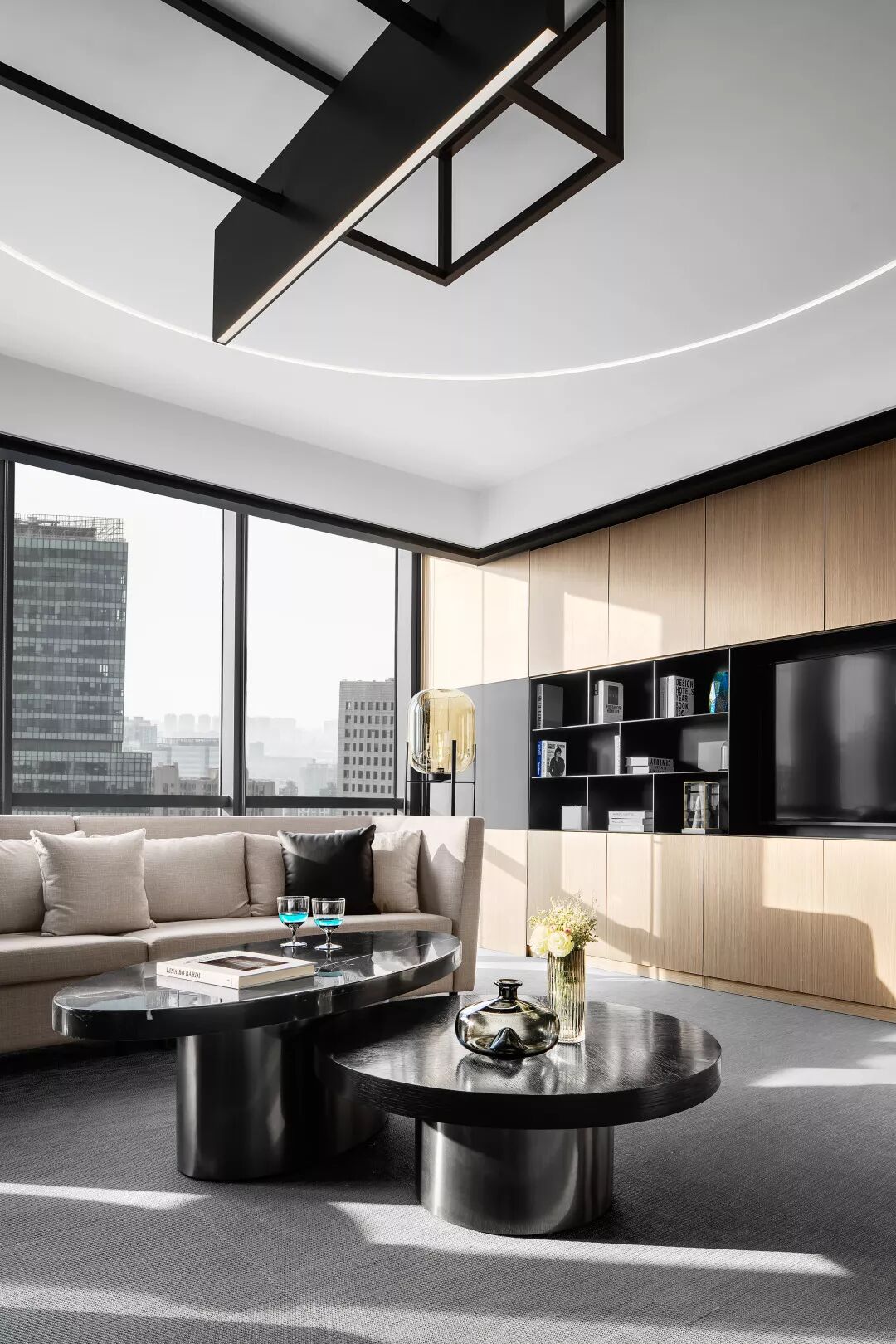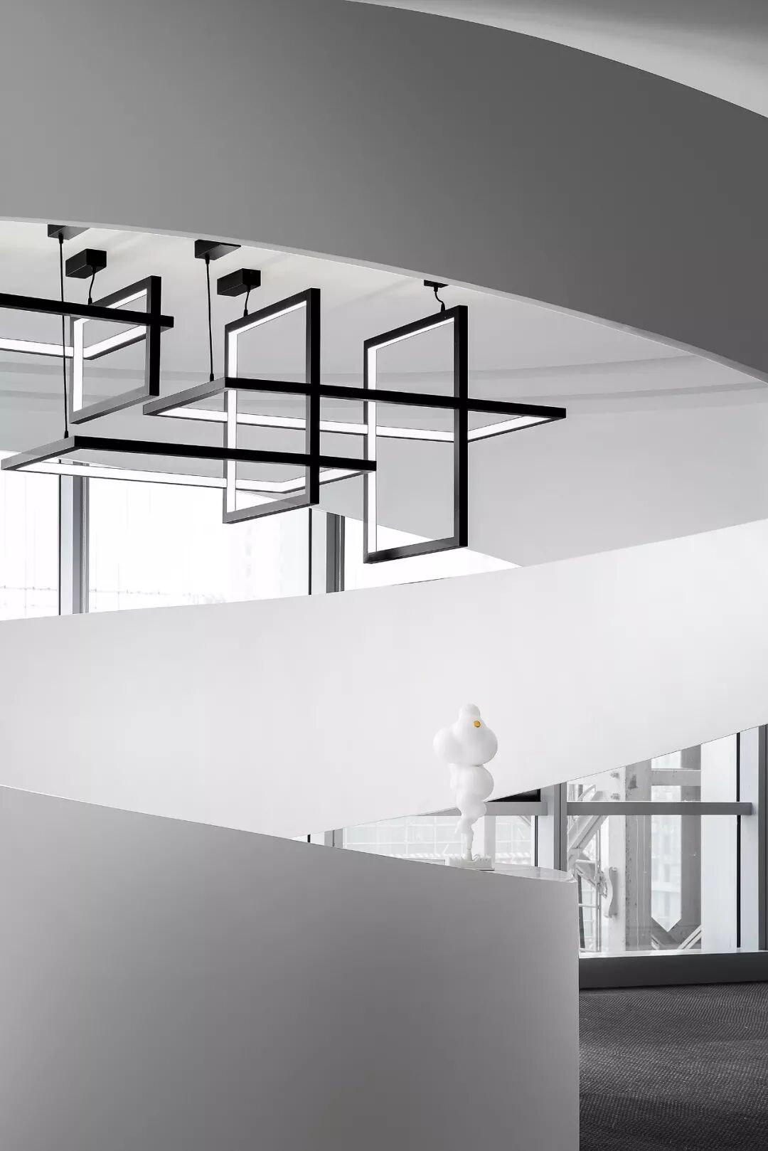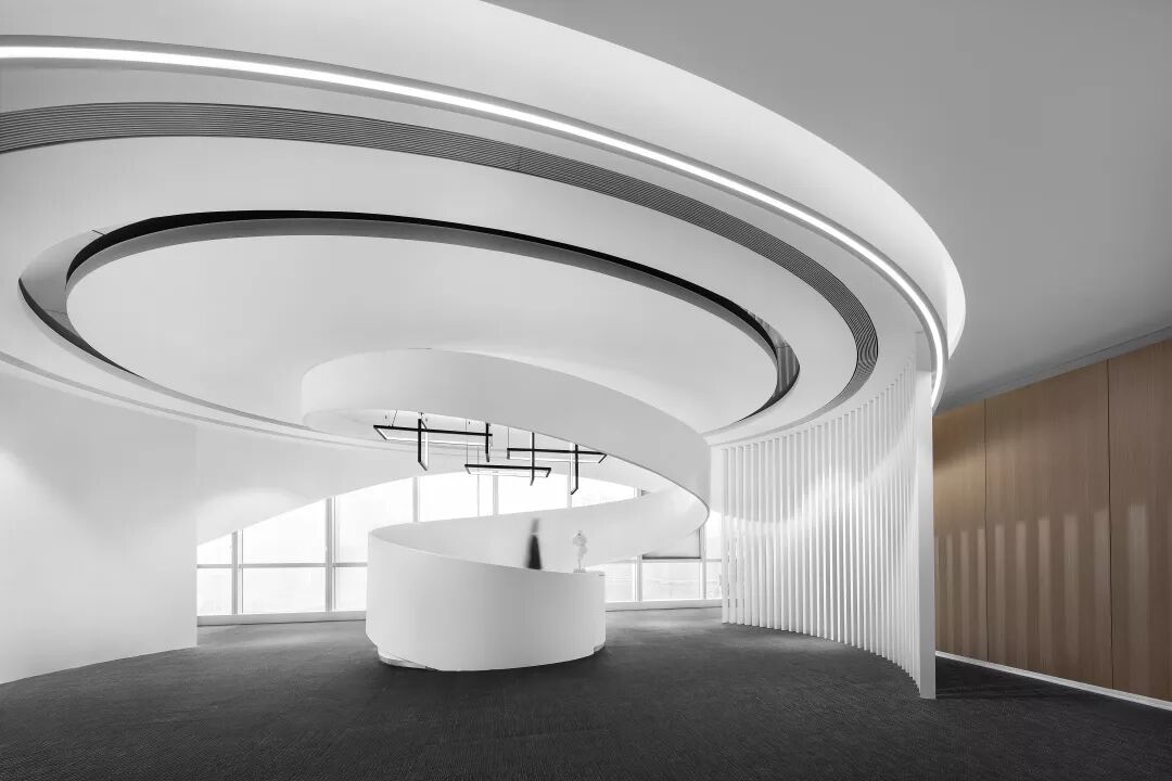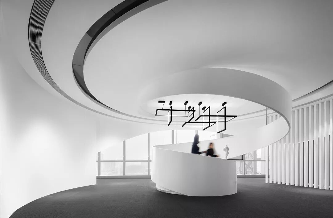 CUN寸DESIGN为未来大都汇定制了一款环形灯具,突破传统的形体关系,丢掉繁复与堆砌造型手法设计。在满足于光与环境的基本属性下,让它更多结合空间理性功能与调性融合,用简单的元素表达出它所属的空间氛围。