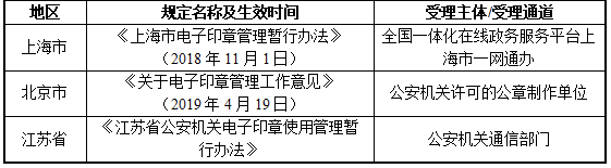 △上海、北京、江苏关于电子印章的申请规定和受理通道