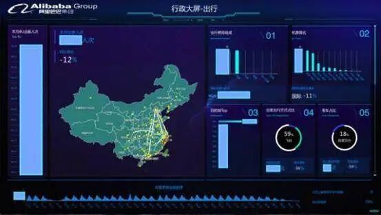 另外在实践中,我们也看到了阿里巴巴行政大屏通过可视化数据集中展示的差旅出行数据分析结果。