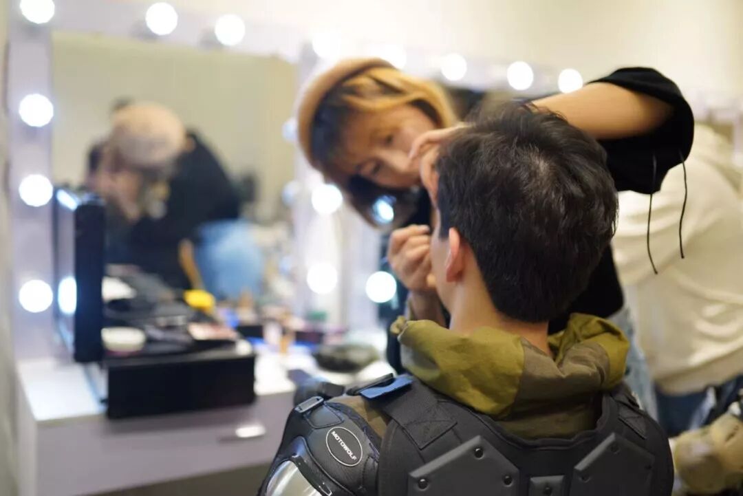 刚从公司下班赶过来彩排的演员,刚放下背包,就开始换装、化妆。
