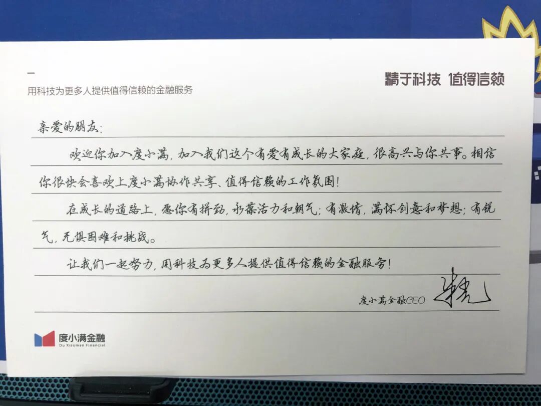 新员工入职第一天,工位一定有很多物品待添置。这时候可以在入职礼中准备一些暖心的物品,用企业关怀力「宠溺」新员工!入职贺卡、公司餐券、小盆栽、腰靠、保温杯、纸巾都很合适。还可以给新员工准备一块蛋糕或一束花,让他在与同事分享的过程中快速熟悉。度小满金融的入职贺卡有CEO的亲笔签名,用亲切的文字表达了对新人的欢迎和期待。网易新员工入职礼包中,除了入职指引、公仔、员工手册等物品,还有一份员工商业保险福利手册。美国的DDB San Francisco公司在入职第一天,会派一辆车把新员工从家里接过来。并在工位上放置了一件卫衣,一个水壶、纸笔,还有一盆花。一些特定岗位员工的入职礼,可以针对岗位需求特别准备。比如给销售人员提供名片、名片夹,给经理及以上员工提供公司管理手册等。除此之外,还可以提供业务部门相关文件,比如岗位说明书、培养辅导计划表等。腾讯针对员工需求,给入职员工特别准备了一副福利扑克牌。一共54张,每一张代表了一种福利:10亿安居计划、家属开放日、30天全薪病假以及各种保险,涵盖了员工工作与生活的方方面面。