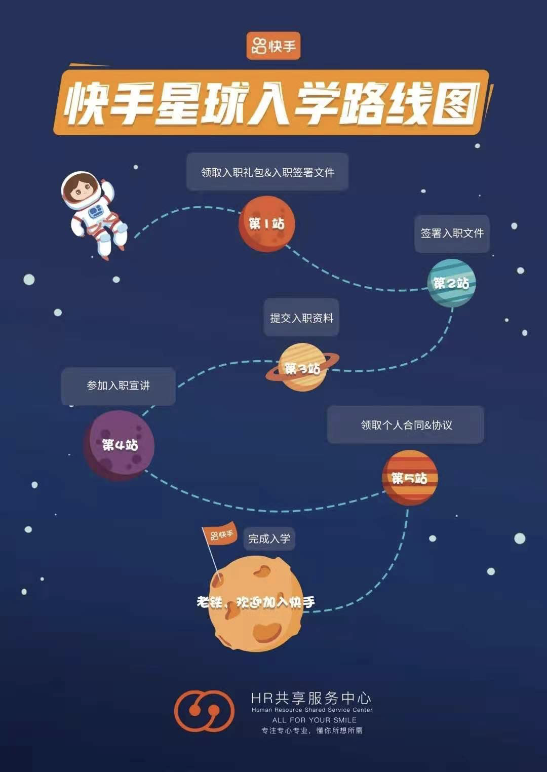 在形式上,可以采取纸质文字版、H5互动版、公众号、移动办公APP等多种展现方式。把入职信息按照自己公司的入职流程分模块编辑。碧桂园天津区域把重要信息印在入职笔记本里,既是入职礼,也是入职指南。度小满金融把入职指南做成手册,并把入职信息按照部门,分为HR篇、行政篇、IT篇以及财务篇。不仅详细列出了各注意事项,负责部门也划分地很清晰。bilibili把入职流程自制成地图,将新员工从入职到使用结束区间内的安排等信息,整理成干货排列在一张地图上,时间安排一目了然,阅读效率更高。此外,他们还会给新员工提供一张入职任务卡,员工通过打卡各种任务快速熟悉公司,过程欢乐、仪式感满满。快手为新人们准备了一份快手星球入住指南,内含快手星球入学路线路,新人进阶任务书、还有园区导览图...超齐备助力快速熟悉新环境。
