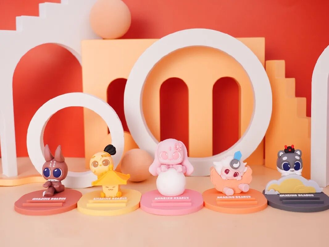 三款盲盒造型分别是月亮、玉兔和茶壶