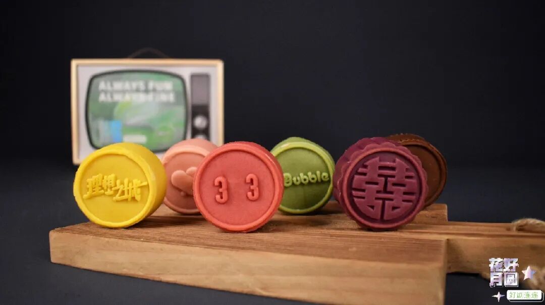 包含四块印有小电视logo的月饼