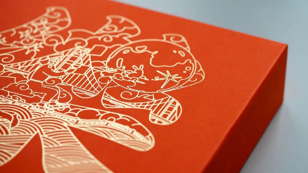 礼盒以石青为底,以金线勾勒
