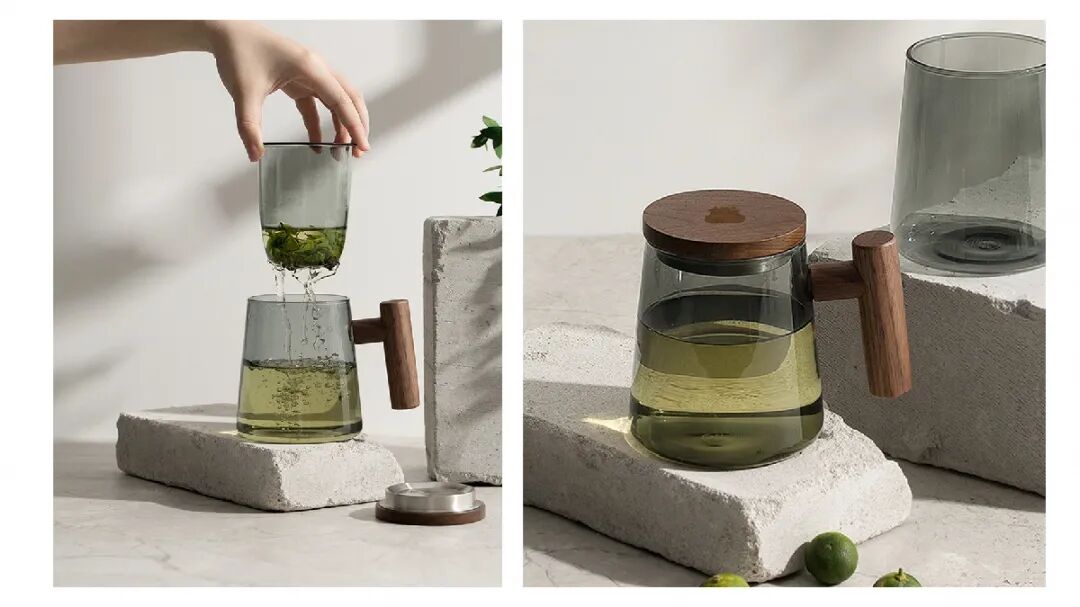 定制茶水分离泡茶杯采用高硼硅玻璃材质