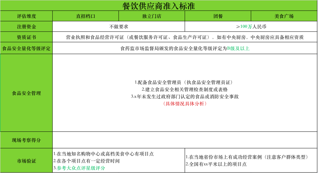 1.餐饮供应商准入标准