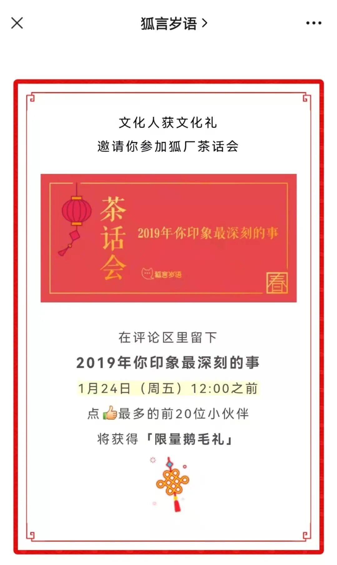 ·去年搜狐就在公众号做了留言互动,并有「限量鹅毛礼」~