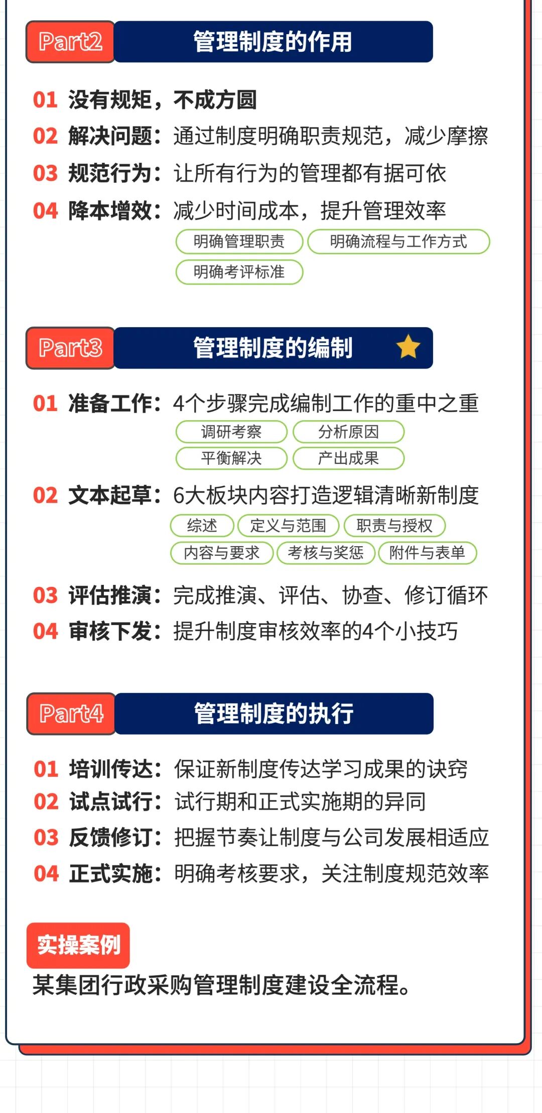 我们也常看到,行政经理或更高级行政岗位的首条职责,通常都是管理制度的编制。