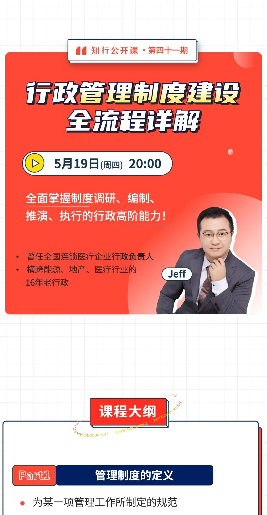 拥有16年行政经验的Jeff老师,来和我们分享,如何掌握【行政管理制度建设】的能力与方法。