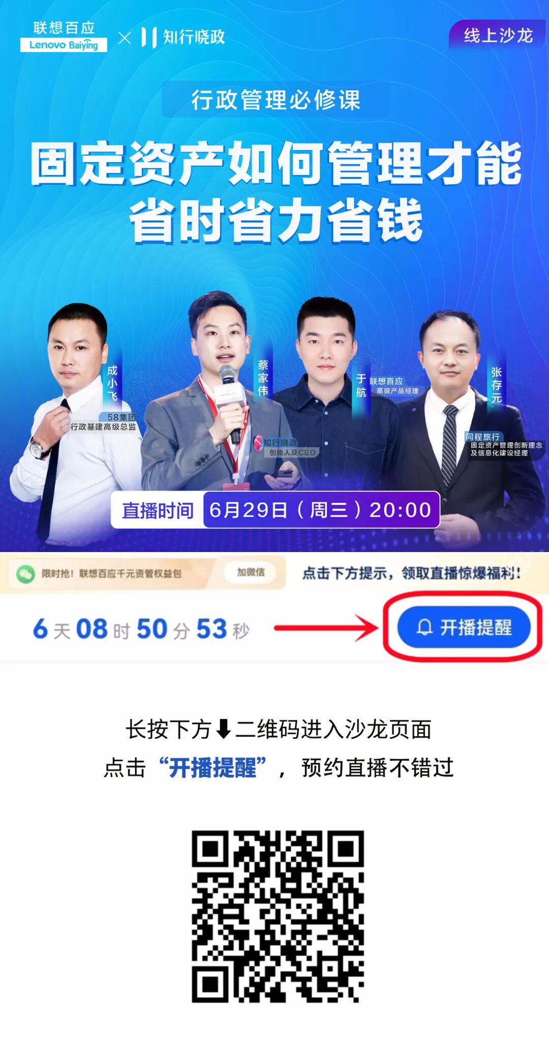 面对固定资产盘点难度大、效率低、追溯难等种种难题,知行晓政携手联想百应邀请到知名企业固定资产管理专家,结合固资管理的痛点和难点,从应对策略、解决方案及实践经验等多角度解读“固定资产如何管理,才能省时省力省钱”。