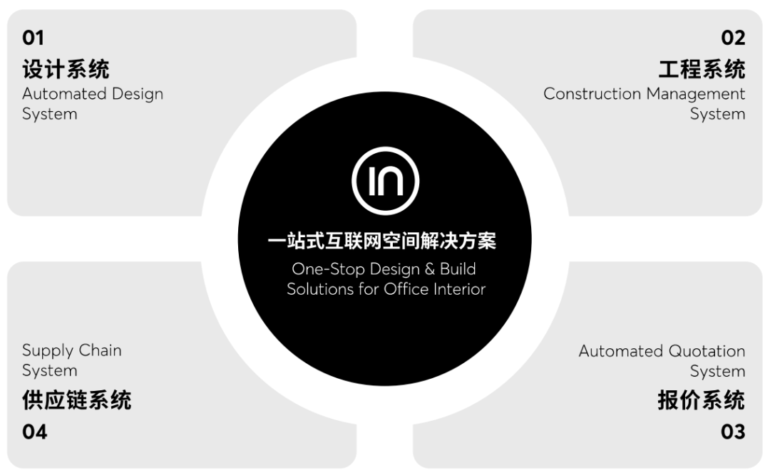 作为一家技术驱动型的装修企业,inDeco还充分利用前沿技术,结合行业实际现状,自主研发SaaS系统、模块化设计、工程管理APP及人工智能辅助工具等,打通了公装产业全链条,用更信息化、数字化、智能化的手段,实现了空间设计装修的高速提效和成本控制,为客户提供了更高效、更便捷、更符合数字化时代的公装服务。
