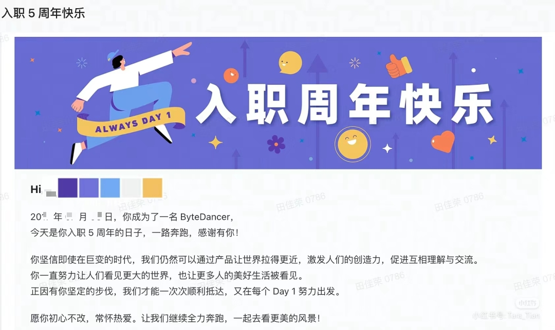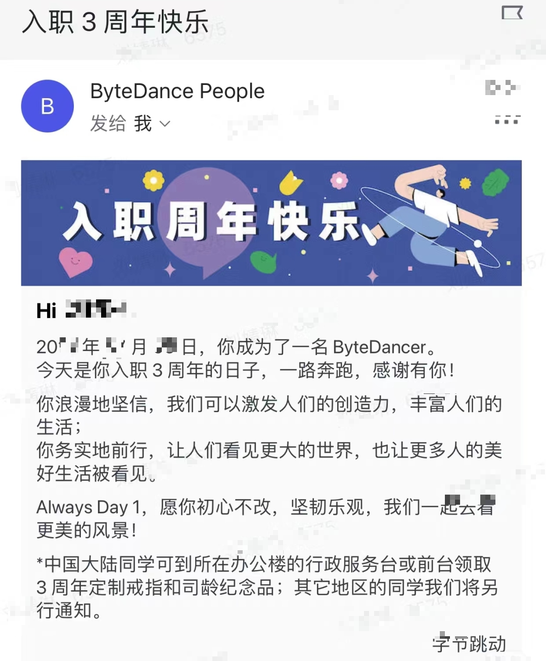 20XX年XX月XX日,你成为了一名 ByteDancer 。今天是你入职3周年的日子,一路奔跑,感谢有你!
