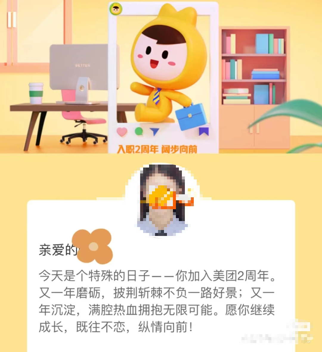 今天是个特殊的日子﹣﹣你加入美团2周年。又一年磨砺,披荆斩棘不负一路好景;又一年沉淀,满腔热血拥抱无限可能。愿你继续成长,既往不恋,纵情向前!
