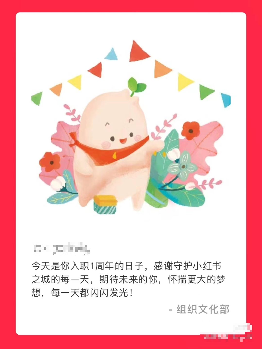 今天是你入职1周年的日子,感谢守护小红书之城的每一天,期待未来的你,怀揣更大的梦想,每一天都闪闪发光。