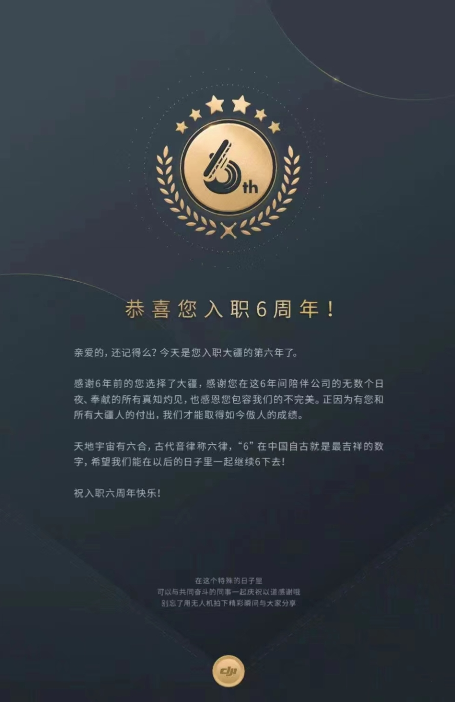 时光飞逝,一年前的今天,您正式成为了大疆家的一员,那时的您满怀期待,开启了与大疆的一段新征程。“1”马当先,征程才刚刚开始,疆域仍等着您去开拓。感谢您为公司的付出,梦想才刚刚起航,让我们一起继续加油!