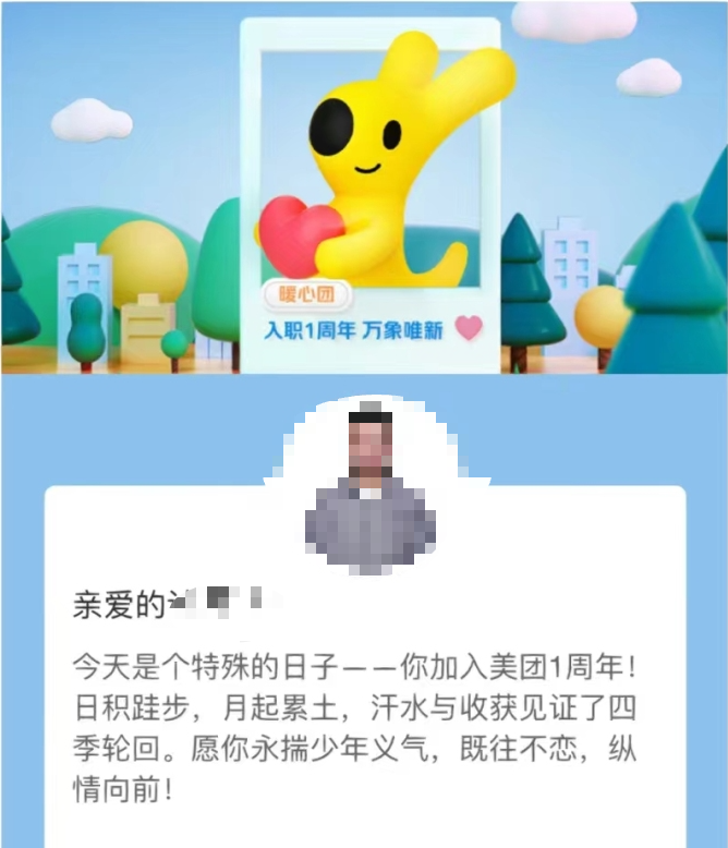 今天是个特殊的日子﹣﹣你加入美团1周年!日积跬步,月起累土,汗水与收获见证了四季轮回。愿你永揣少年义气,既往不恋,纵情向前!