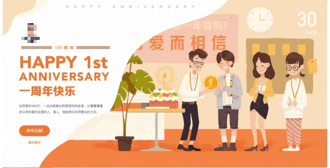 今天是你入职1周年的日子,一路奔跑,感谢有你!