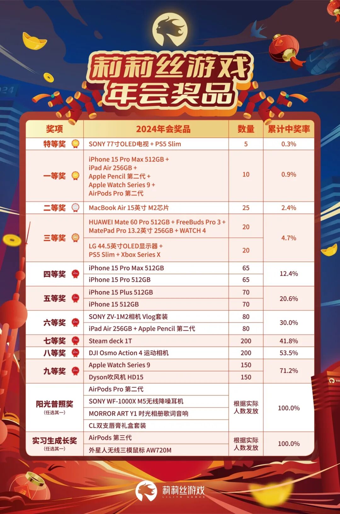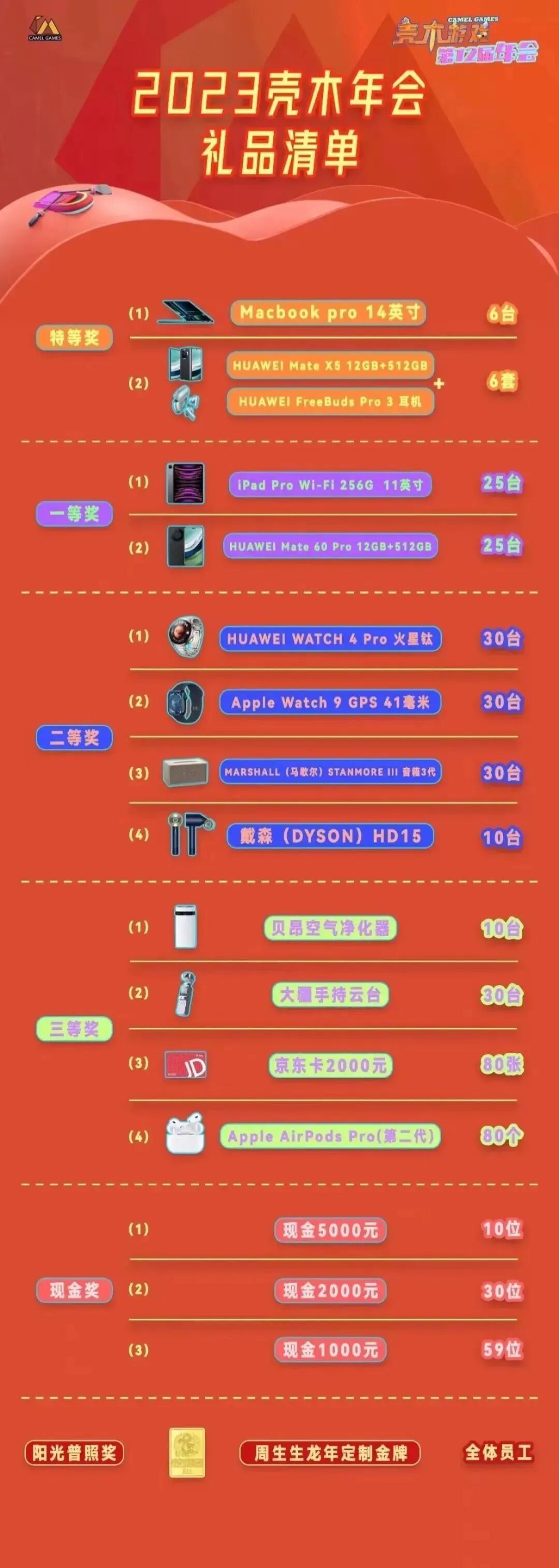 *现阶段能搜集到的案例中游戏公司较多,如果你司的年会奖品清单也已经出炉,欢迎留言分享哦!