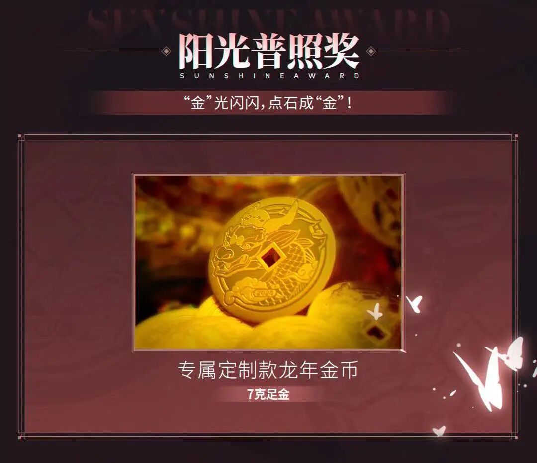 蛮啾网络今年特别定制了7g足金的龙年金币,作为阳光普照奖着实用心。