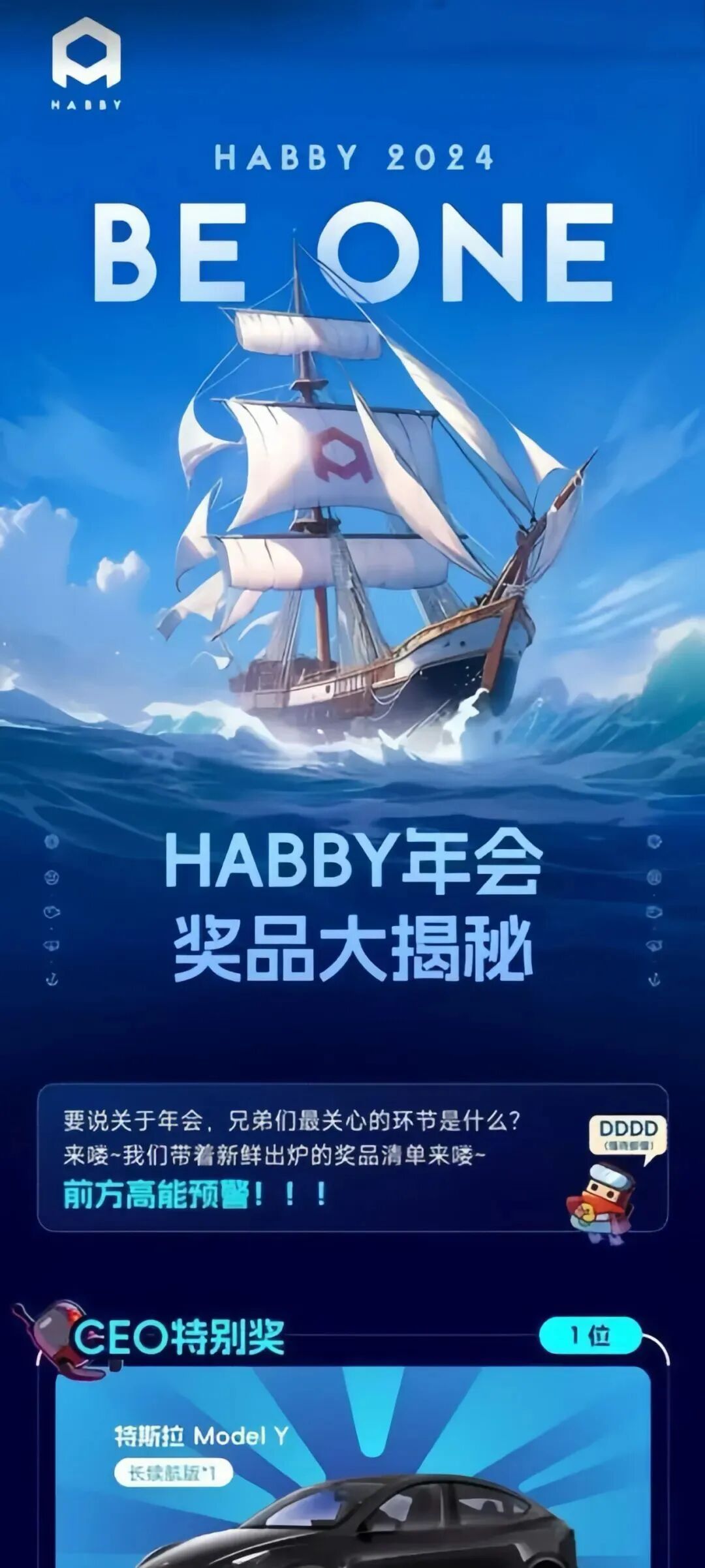 要说今年最“豪”的奖,莫过于海彼网络的“CEO特别奖”,直接送一辆价值30w的特斯拉!放在整个年会奖品界真的是非常炸裂的存在。