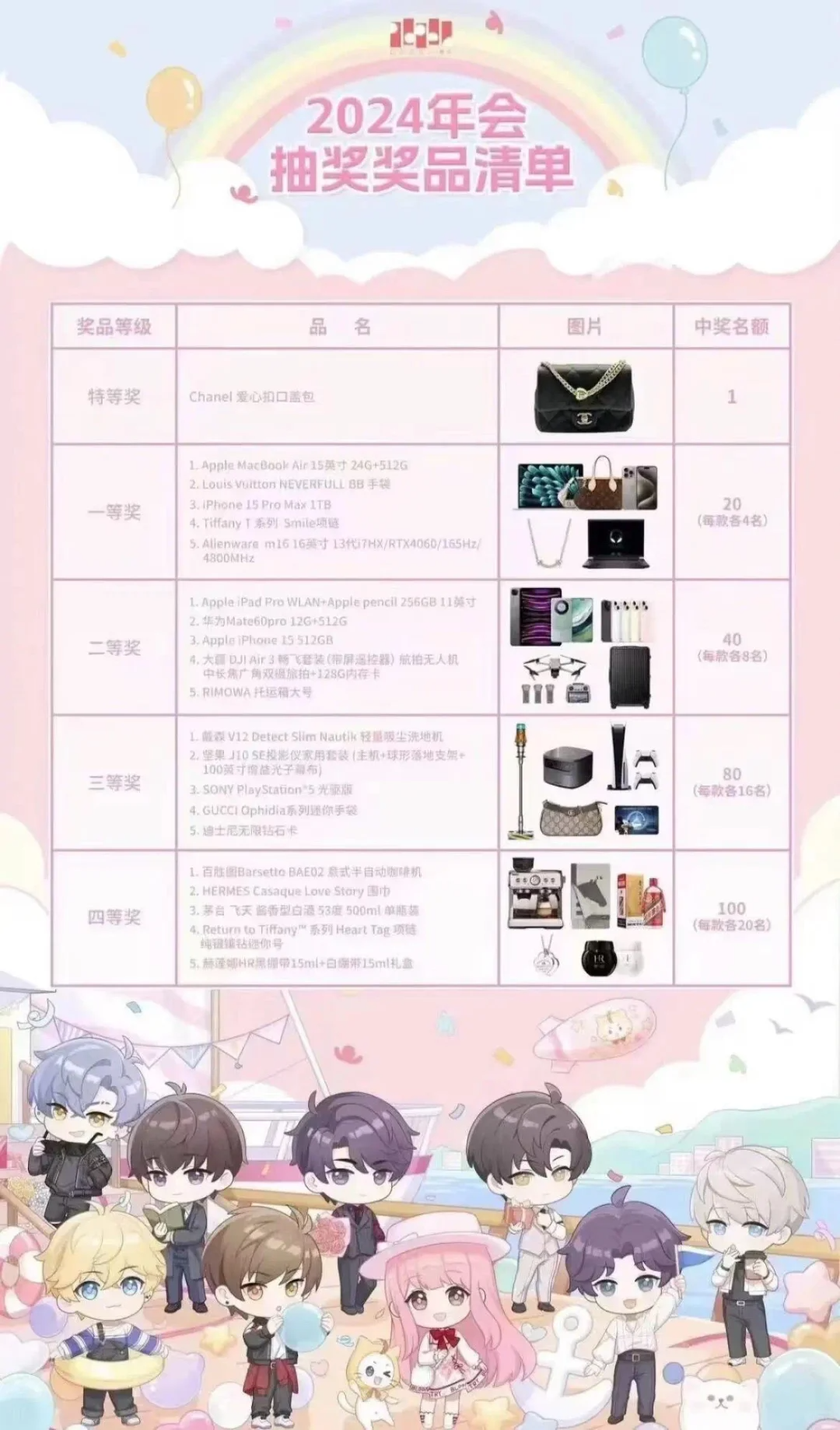 叠纸在年会奖品的选择上颇具企业特色,有大牌奢侈品包包、项链、化妆品、迪士尼钻石卡等,明显更偏爱女性。