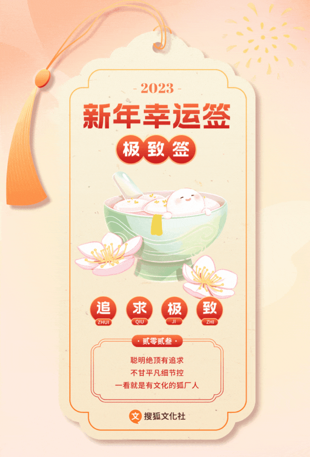搜狐在元宵节这天送给大家一份特别的祝福,以抽取兔年幸运签的形式在线上为大家送去元宵祝福,抽到“聪明签、靠谱签、极致签”并晒到朋友圈的小伙伴,将截图发送给狐言言可以获得礼物一份~