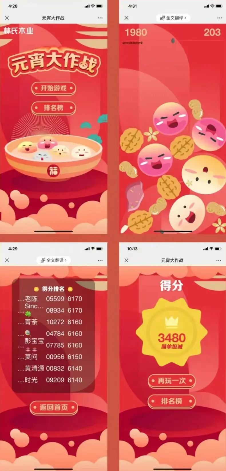 林氏木业三个办公区的小伙伴在元宵节来了场线上连结,线上游戏:元宵大作战,林氏的小伙伴们拼手气、拼运气,排名前100的高端玩家就可以获得神秘奖品。参加线上游戏的小伙伴大呼好玩、过瘾。
