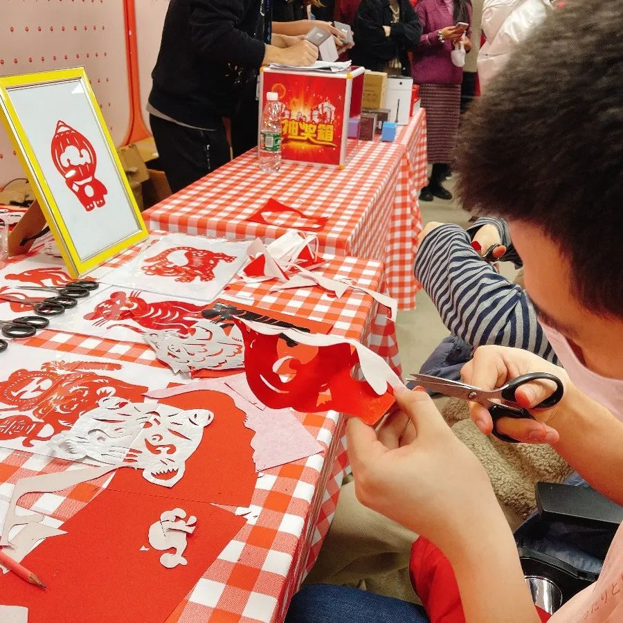 同样属于传统习俗的还有剪纸,昆仑集团为大家请来了剪纸老师,老师边指导边创作,带领同学们纷纷完成了剪纸作品。