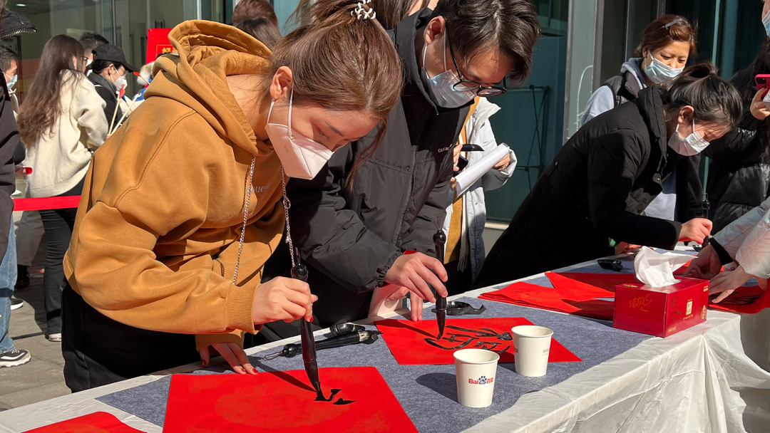 在喜气洋洋的节日里,亲手写个"福"字,留住福气!百度去年元宵节设了“福气DIY”摊位,为大家准备了笔墨和纸,大家可以自己写福字。