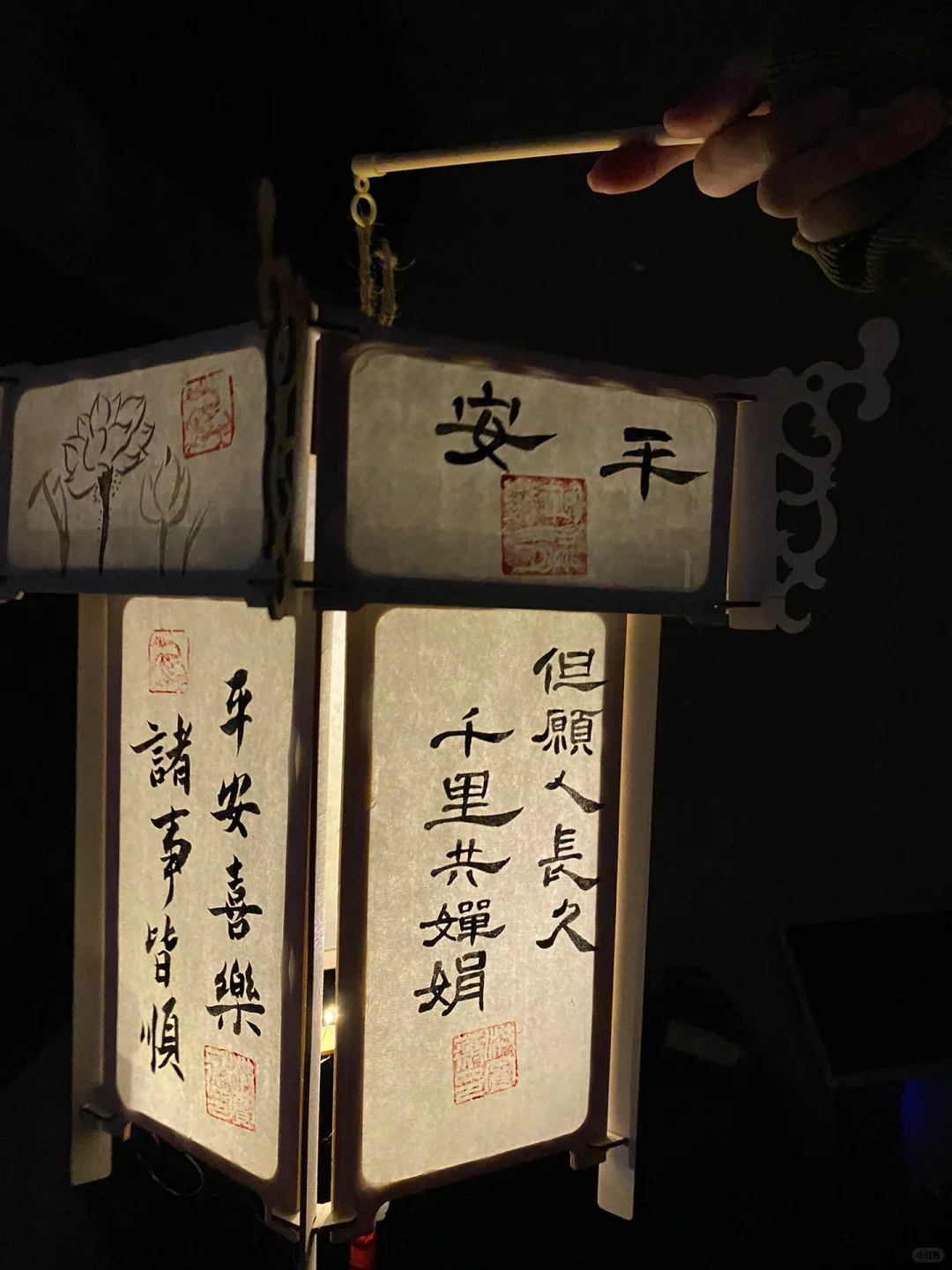 还可以这样,将与月相关的古诗写在灯笼上,氛围感拉满。