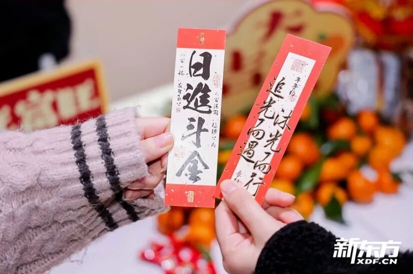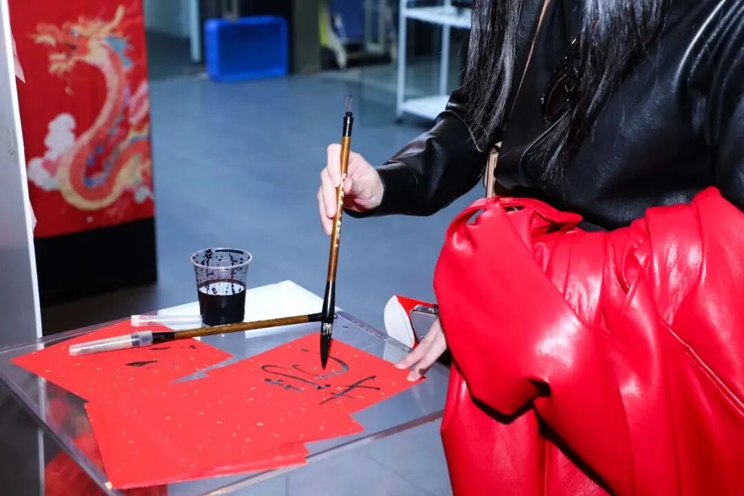 现场还为大家准备了笔墨,大家挥毫泼墨,在红纸上写“福”字,张贴吉祥字画,寓意新的一年迎春接福,平添吉利。